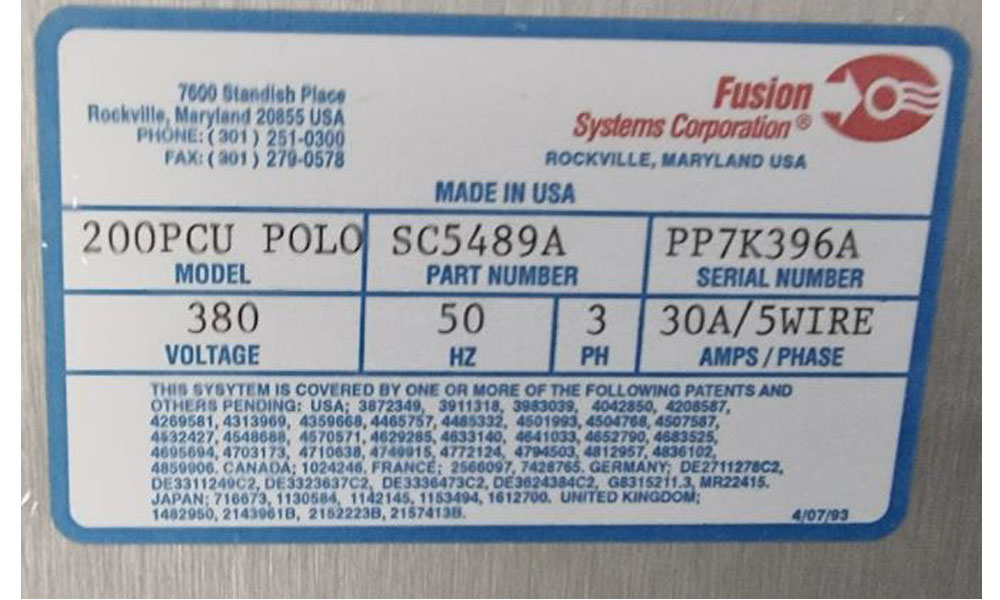 Fusion Systems Corporation Fusion 200 PCU POLO